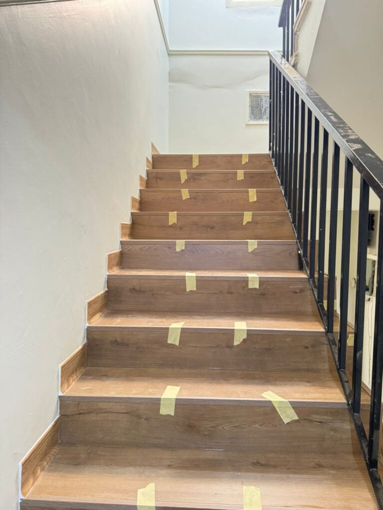 بعد الانتهاء، يتم تركيب الحواف الجانبية وتنظيف المكان بالكامل. وبهذا تحصل على أرضية متكاملة وجاهزة للاستخدام.